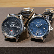 宝路华GMT手表机械表男表官方双历显示蓝盘手表欧美表96B387