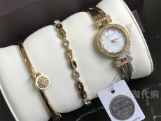 现货美国anne klein玫瑰金拼银色手镯款女士石英手表套装