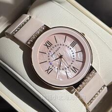现货美国anne klein淡粉色陶瓷 珍珠贝母表盘女士水钻石英手表