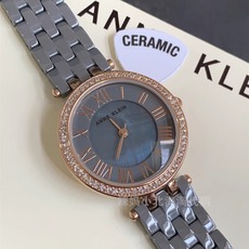 现货美国Anne klein灰绿色陶瓷表带珍珠贝母表盘女士水钻石英手表