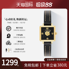 COACH蔻驰手表CASS茶玫瑰小方表牛皮方糖石英表送女生礼物