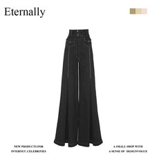 Eternally【现货】高腰牛仔休闲喇叭长裤黑灰色宽松显瘦四季百搭