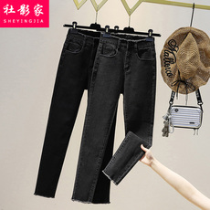 弹力修身牛仔裤少女初中高中学生2025春秋装新款韩版毛边小脚裤子