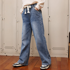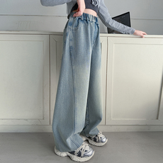 女童好看直筒复休闲牛仔裤儿童裤子中大童初中学生高腰宽松阔腿裤