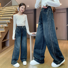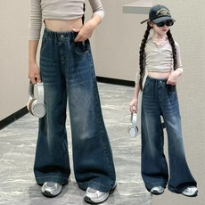 女童牛仔裤春秋款2025新款儿童秋季初中学生阔腿裤大童秋装裤子潮