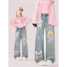 刺绣牛仔长裤少女春秋装2025新款初中高中学生显瘦休闲直筒阔腿裤