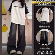 阔腿牛仔裤少女夏薄款2025初中高中学生高腰显瘦宽松小个子直筒裤
