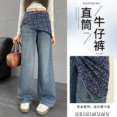 阔腿牛仔长裤子少女春秋2025年新款初中高中学生宽松复古高街直筒