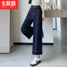 时尚复古阔腿牛仔裤女春秋2025新款初高中学生高腰宽松拖地弯刀裤