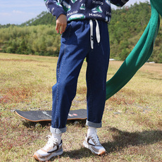 加绒加厚牛仔裤少女秋冬装2025新款初中高中学生直筒宽松哈伦裤子