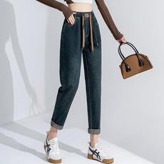 加绒牛仔裤女松紧高腰冬季弹力加厚初中高中学生哈伦小脚休闲裤子