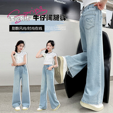 女童牛仔裤夏季薄款2025新款大童夏装直筒夏天儿童阔腿裤子中学生