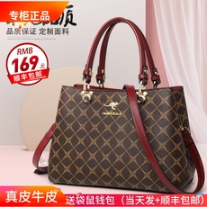 袋鼠真皮女包2025新款潮流百搭大容量中年送妈妈包女士软皮斜挎包