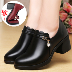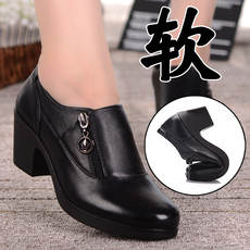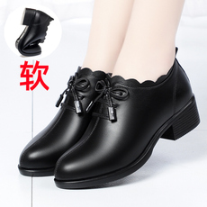 防滑软底软面舒适女鞋中年妈妈鞋春秋款真皮中跟皮鞋不累脚工作鞋