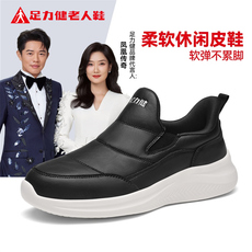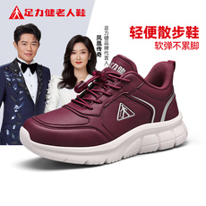 足力健老人鞋旗舰店正品中年妈妈皮面健步软底轻便不累脚运动女鞋