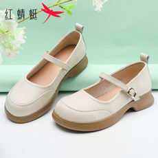 红蜻蜓女鞋秋季深口系带英伦小皮鞋粗跟女单鞋真皮通勤中年妈妈鞋