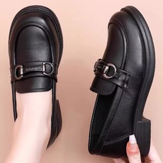 断码品牌鞋真皮坡跟单鞋女2025新款春夏黑色软底软皮中年妈妈皮鞋