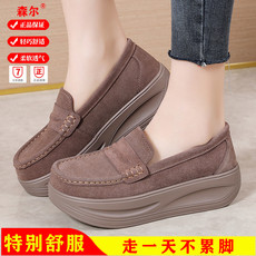 加绒真皮高帮鞋摇摇鞋女厚底坡跟雪地靴棉鞋女鞋中年妈妈松糕皮靴