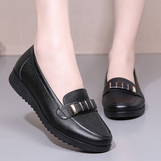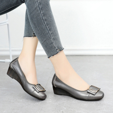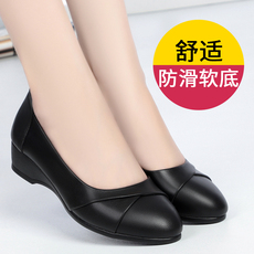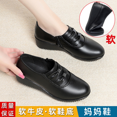 软底妈妈鞋坡跟女舒适中年时尚皮鞋真皮透气圆头浅口单鞋防滑软底