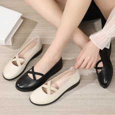 断码鞋特价真皮女鞋民族风妈妈鞋中年平底鞋牛筋底防滑踩脚女单鞋