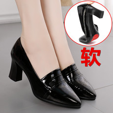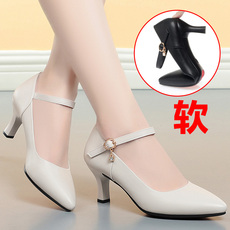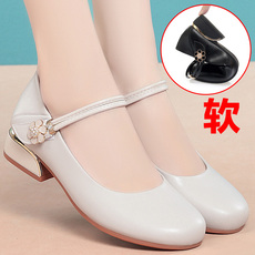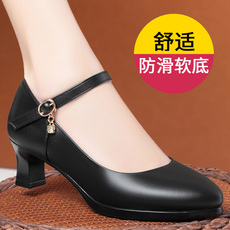 中年女士高跟鞋中老年妈妈鞋真皮软底皮鞋中跟粗跟单鞋春秋女鞋子