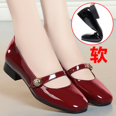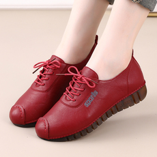 妈妈鞋女单鞋真皮软底软面低跟舒适女鞋中年春季红色鞋子女士皮鞋