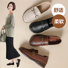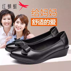 红蜻蜓女鞋 秋季新款真皮中年女士妈妈鞋 平底软皮皮鞋坡跟单鞋女
