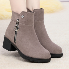 2025秋冬真皮短靴磨砂皮百搭女靴大码软底妈妈鞋中年短筒加绒棉鞋