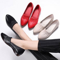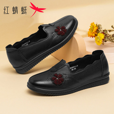 红蜻蜓女鞋2025秋季真皮舒适透气浅口单鞋百搭软底休闲中年妈妈鞋