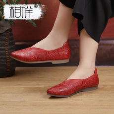 相伴相伴真皮国风妈妈鞋子女秋季新款羊皮单鞋超软软底中年女鞋