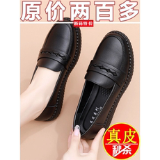 品牌特价真皮单鞋女2025新款春秋季中年妈妈鞋跳舞软底工作小皮鞋