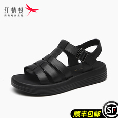 红蜻蜓正品女鞋真皮罗马凉鞋2024夏季新款软底防滑中年妈妈平底鞋