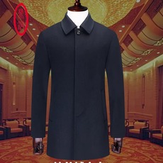 100%纯羊毛男士羊毛呢大衣中长款中年毛呢子风衣夹克外套爸爸上衣