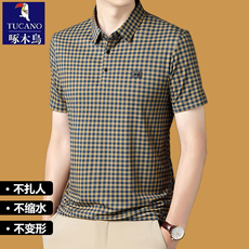 啄木鸟无痕冰丝短袖polo衫夏季中年男士格子衫宽松薄款爸爸装t恤
