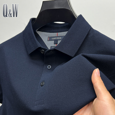 啄木鸟爸爸夏装桑蚕丝短袖T恤中年男士冰丝polo衫免烫抗皱体恤衫