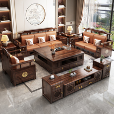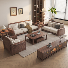 新中式北美黑胡桃木沙发组合轻奢简约冬夏两用小户型客厅实木家具
