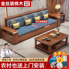 新中式金丝胡桃木实木沙发组合大小户型冬夏两用客厅沙发组合套装