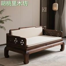 新中式北美黑胡桃木罗汉床实木雕花罗汉床榻沙发客厅茶室禅意沙发
