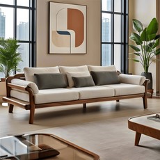 新中式直排沙发胡桃实木罗汉床日式侘寂风布艺客厅沙发家具定制