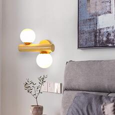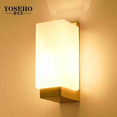 日式木艺床头壁灯卧室简约现代实木中式北欧创意客厅过道酒店灯具