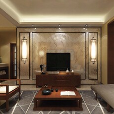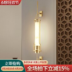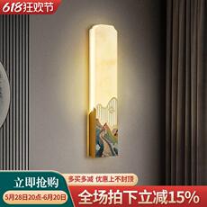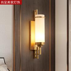 【功成圆满】新中式云石壁灯现代客厅卧室全铜背景灯床头灯过道灯