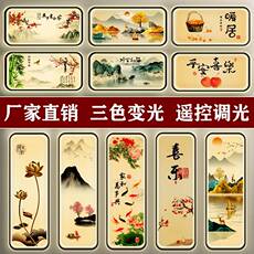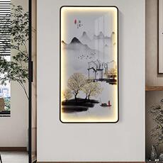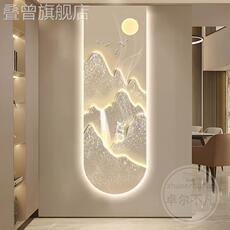 流水生财入户玄关装饰画新中式led壁灯山水画高级感走廊过道挂画