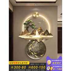 流水生财新中式壁灯入户门迎客松挂画玄关九鱼图山水装饰走廊过道