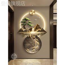 福鹿九鱼玄关装饰画新中式山水画入户正对门挂画走廊过道led壁灯