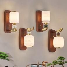 新中式全铜胡桃木玉石壁灯客厅背景墙过道走廊卧室中国风禅意LED