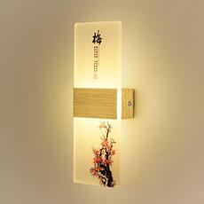 创意新中式玄关壁画灯楼梯人感应客厅走廊过道背景墙方形挂画壁灯