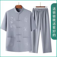 唐装男短袖休闲套装爸爸夏装中老年人灰色中国风男装夏季爷爷汉服
