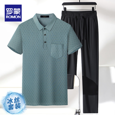 罗蒙爸爸装短袖t恤男士polo衫冰丝中老年人体恤爷爷夏装上衣套装