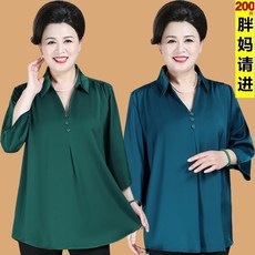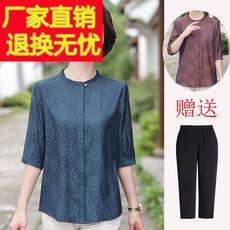 奶奶夏季真丝衬衫上衣中老年妈妈夏装桑蚕丝七分袖老太太衬衣套装