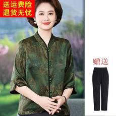 中老年人春夏装七分袖桑蚕丝衬衫女妈妈真丝上衣奶奶装夏季套装